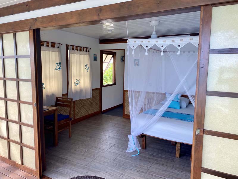 Fafapiti Lodge propose 3 bungalows confortables au bord d’une plage privée face au lagon dans un endroit calme et tranquille.